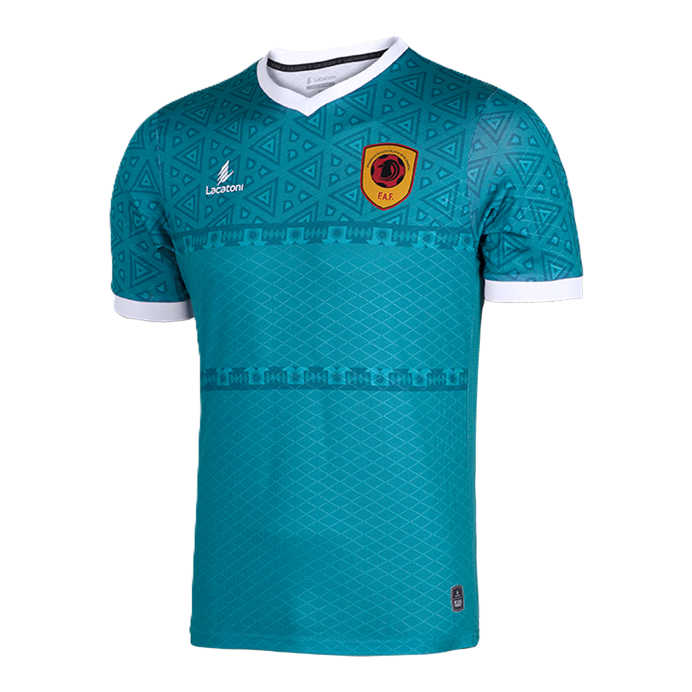 T-shirt Oficial de Guarda Redes da Seleção Angolana de futebol é inspirada no tecido tradicional do país, Samakaka. Representado de forma subtil na parte superior frontal da camisola e de forma mais expressiva na faixa frontal.